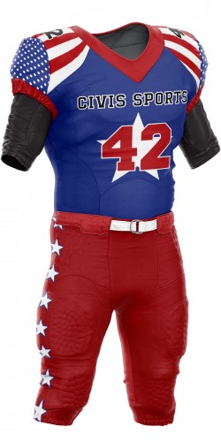 DescriptionCIVIC SPORTS American football Uniform made of high tech Lycra stuff. Stretchable.