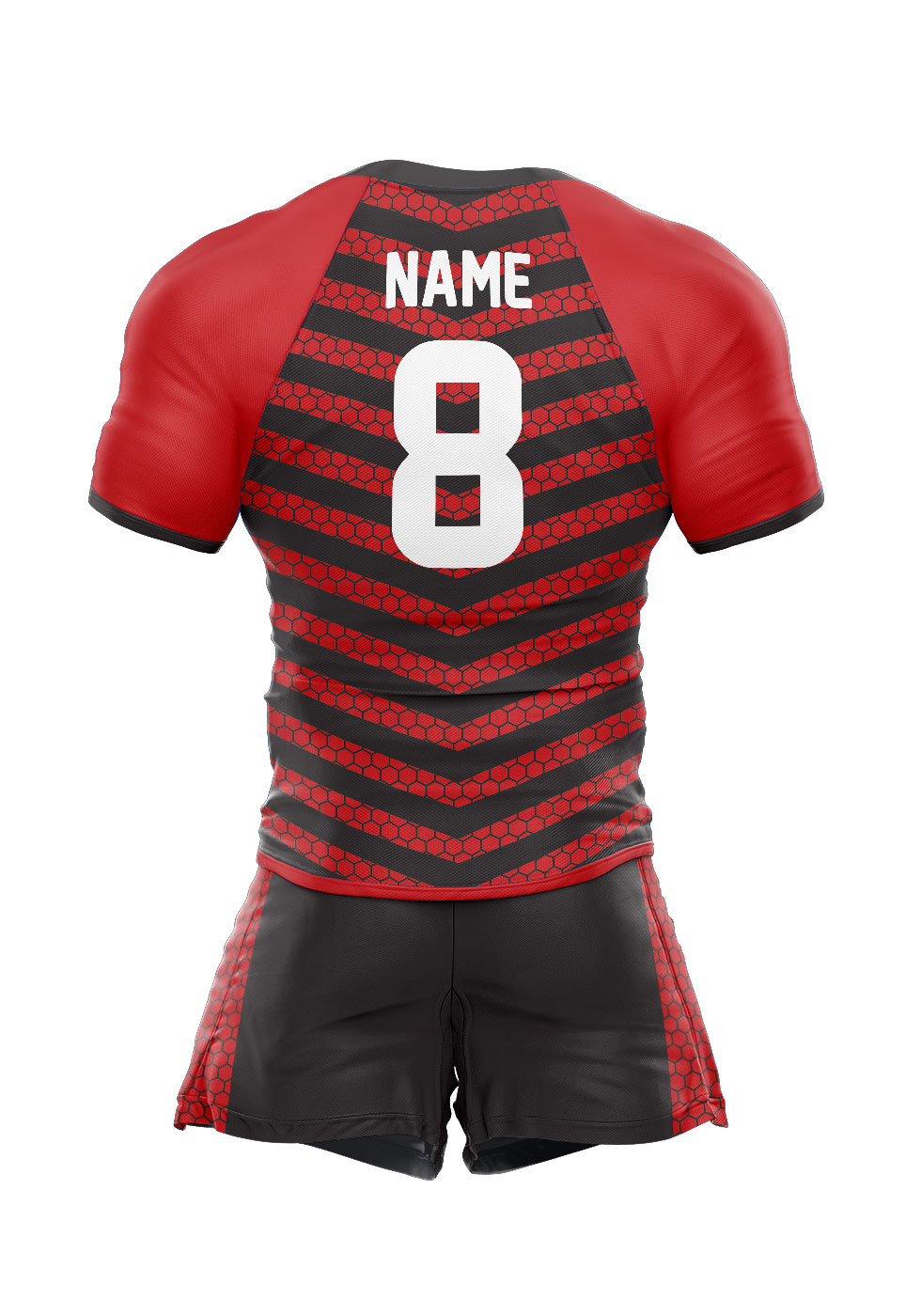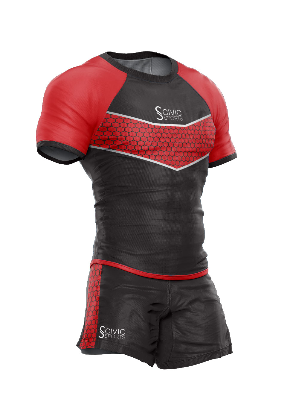 CIVIC SPORTS Round neck sublimated design rugby kit made of 100 % Polyester that boosts evaporation of sweat.