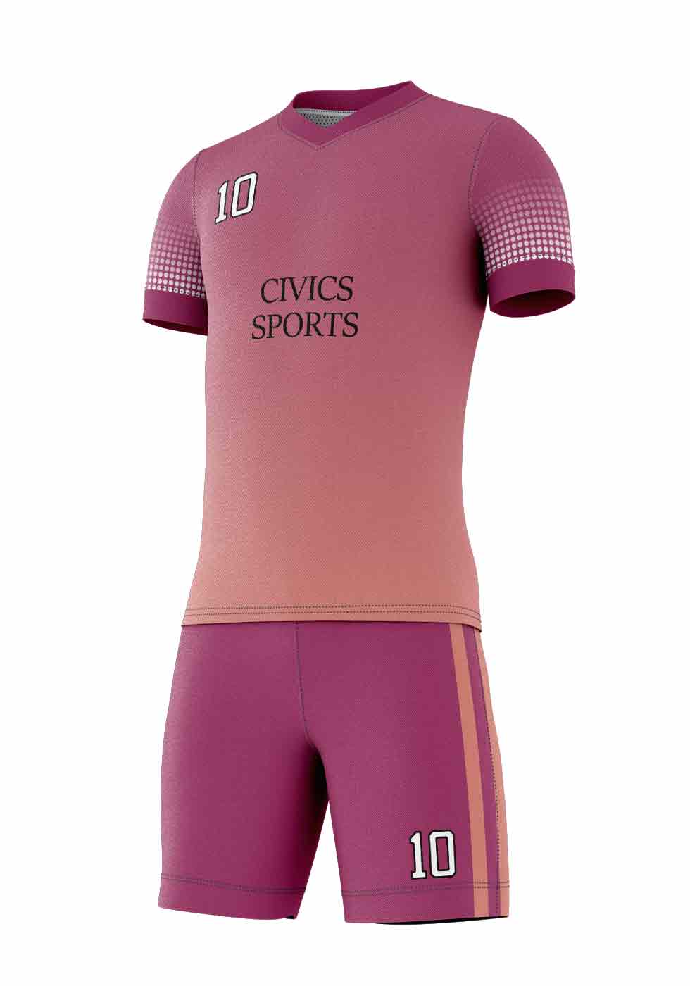 CIVIC SPORTS V-Neck, short sleeve, loose fit, sublimated design Soccer Kit made of light weight (100% polyester) fabric. Feature quick-drying, ultra soft and provides excellent performance and comfort.