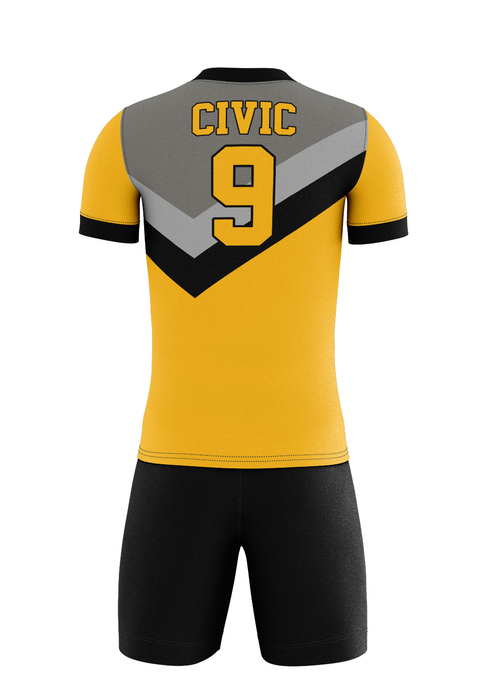 CIVIC SPORTS V-Neck, short sleeve, loose fit, sublimated design Soccer Kit made of light weight (100% polyester) fabric. Feature quick-drying, ultra soft and provides excellent performance and comfort.
