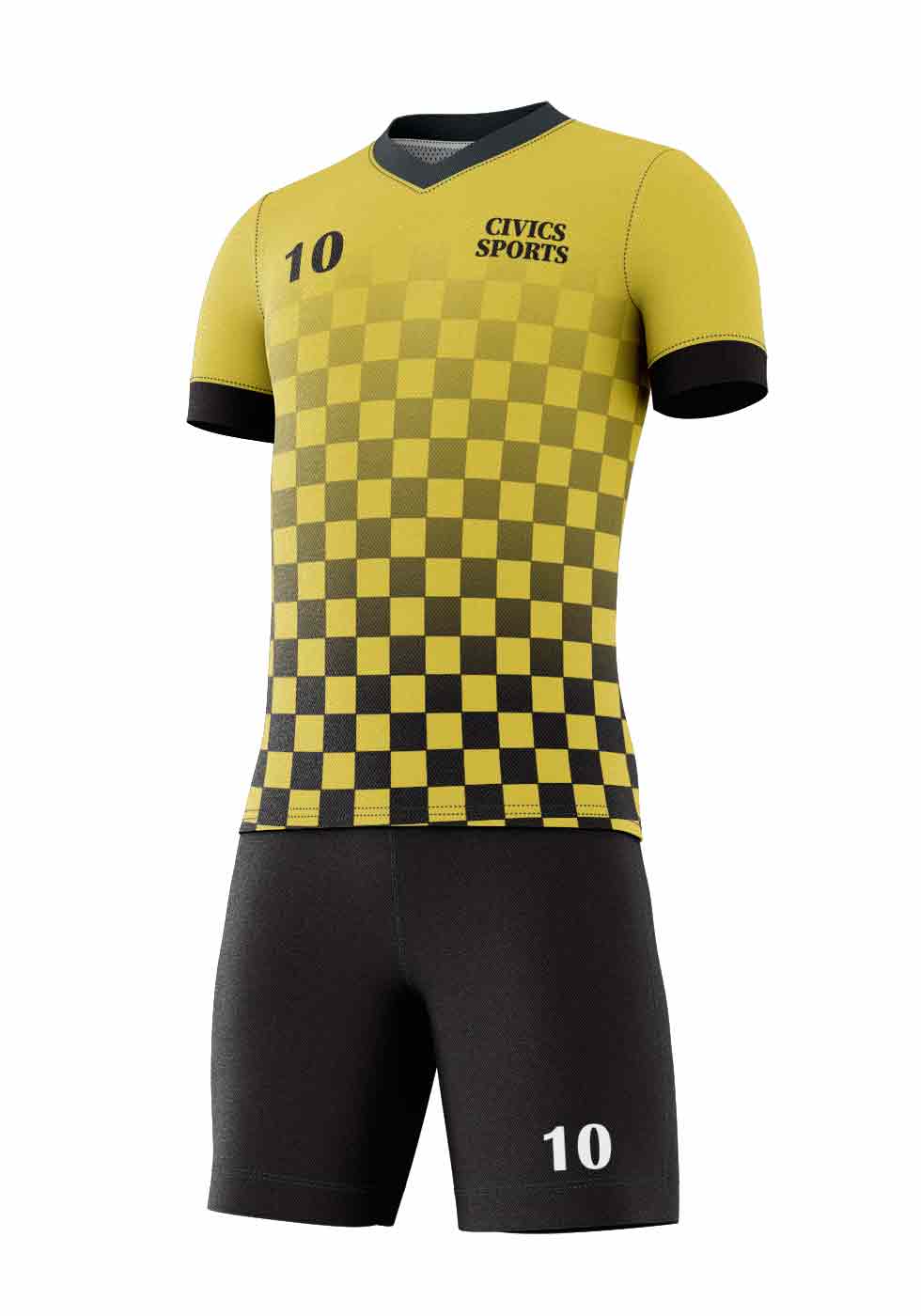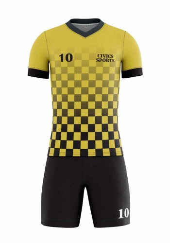 CIVIC SPORTS V-Neck, short sleeve, loose fit, sublimated design Soccer Kit made of light weight (100% polyester) fabric. Feature quick-drying, ultra soft and provides excellent performance and comfort.