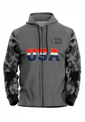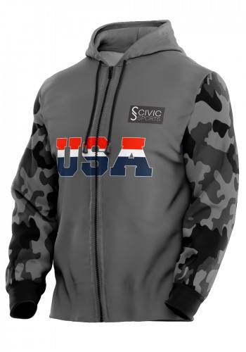 Grey Camouflage Zipper Hoodie